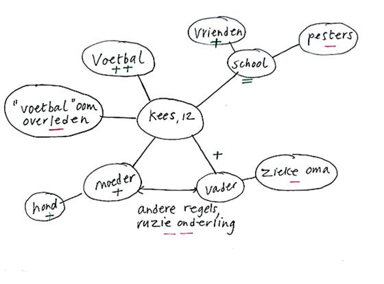 The Understanding and Deciding Together with Children project has been running since October 2022. This project is working on creating an environment to have an open conversation. The target group is children from 12 to 18 years old with psychological or persistent physical issues. The conversation is conducted using the Network Intake and the Positive Health Child Tool. This conversation contributes to ' understanding together ' what is going on. The focus is not on the complaint, but on what is important in the child's life. The left image is an example of a Network Intake Drawing. The care provider and the child have together made a drawing of what is going on in the child's life, what helps and what hinders him. The right image is the Child Tool which shows the topics that the care provider can discuss with the child. The care provider and the child can complete the Child Tool together or the child can complete it as an online questionnaire.