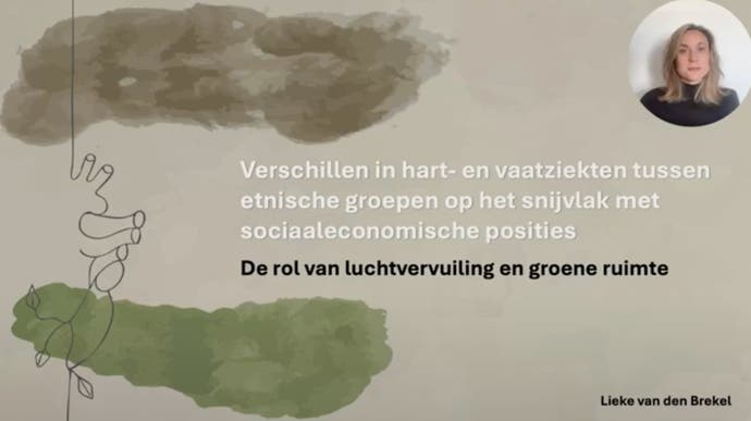 Lieke van den BrekelCardiovascular disease disparities across ethnicity and intersecting socioeconomic positions. The role of air pollution and green space Lieke van den Brekel vertelt in haar pitch over haar onderzoek. Lees proefschrift online